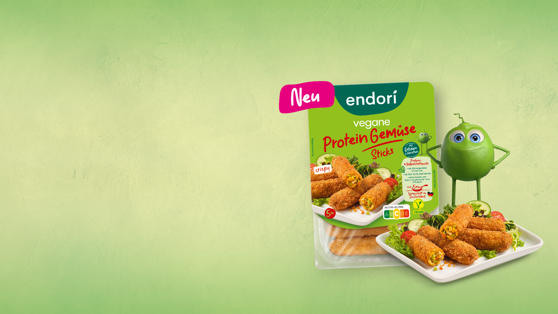 Green, proud und ziemlich crunchy: Die Protein Gemüse Sticks von endori sind mehr als nur ein weiterer Gemüsesnack: Sie kombinieren eine saftige Textur mit einer besonders knusprigen Panade und bringen durch eine innovative Rezeptur aus Gemüse und pflanzlichem Protein den idealen Crunch mit.