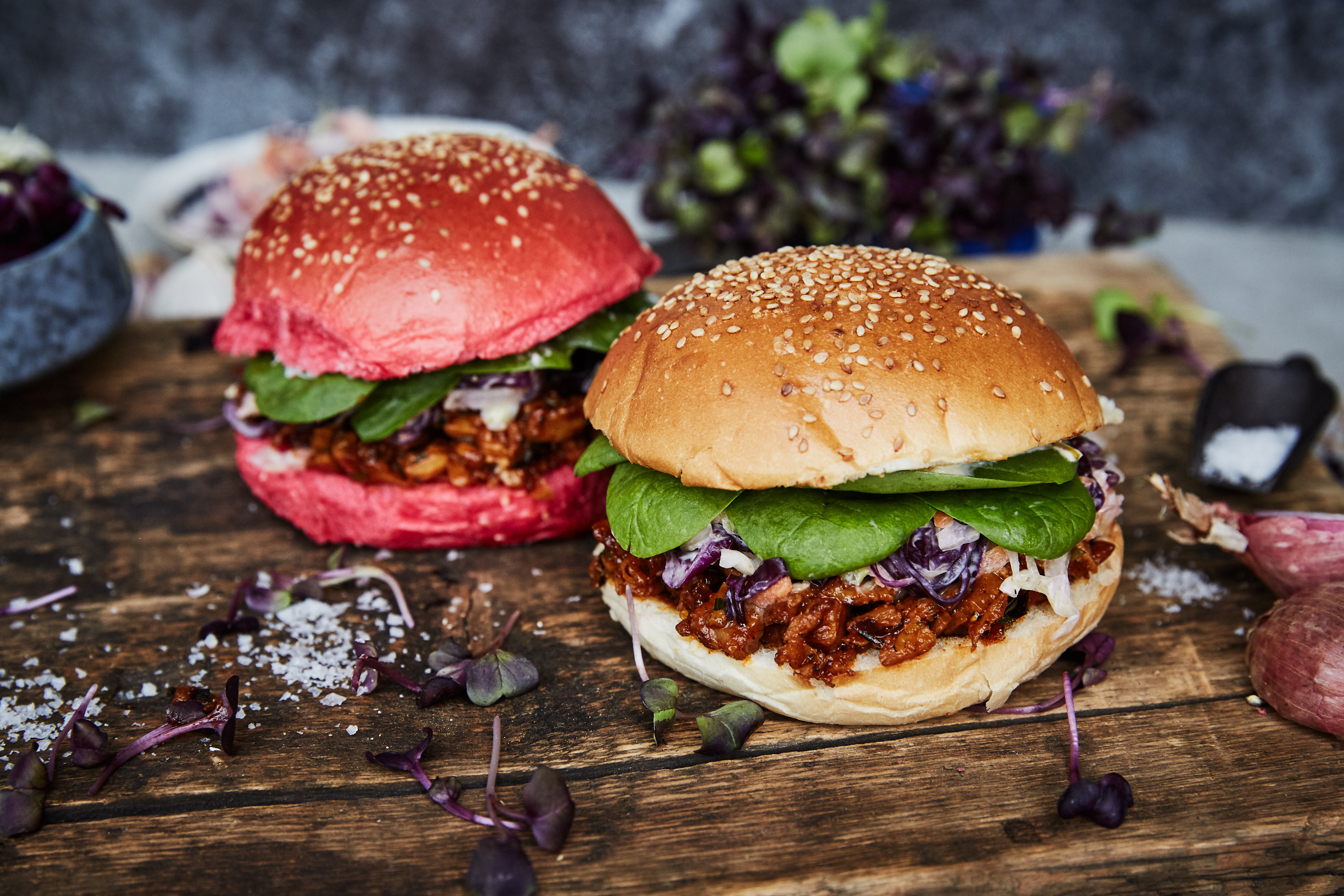 Aufgeschnittene Burgerbrötchen in der Pfanne kross mit antoasten, anschließend auf der Oberseite mit BBQ Sauce bestreichen, die Unterseite mit Krautsalat belegen und darauf das gebratene endori vegane Chicken BBQ legen. Den Deckel auf den Burger setzen und reinbeißen. TIPP: Der Coleslaw schmeckt auch aus Rotkraut oder Rot- und Weißkraut gemischt!