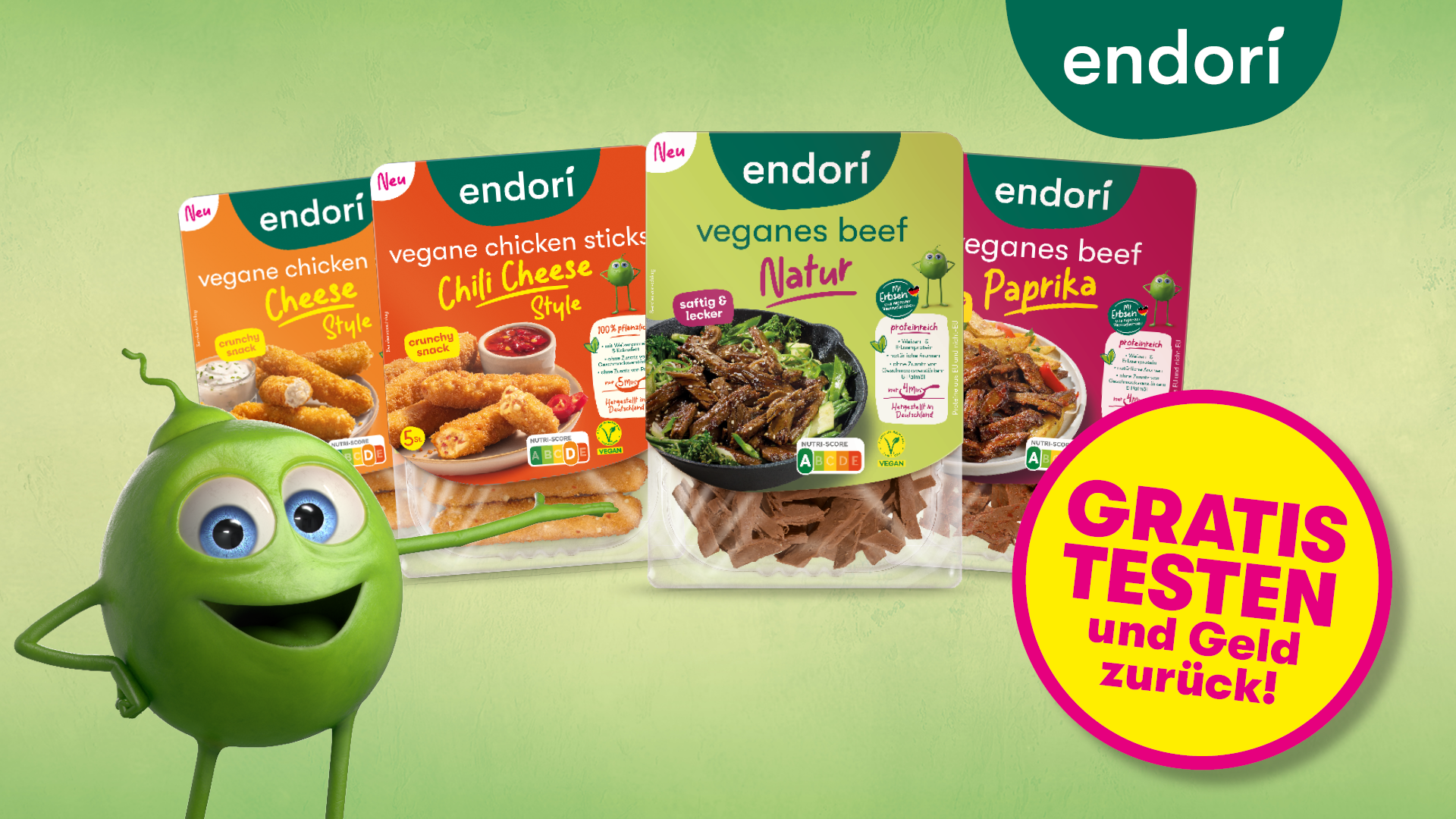 Probieren, genießen, Geld zurück – so easy geht’s! Mit einer starken POS-Aktion und einer reichweitenstarken digitalen Kampagne rückt endori seine neuesten pflanzlichen Produkte ins Rampenlicht. Unter dem Motto „Gratis testen und Geld zurück“ können Kund:innen vom 1. März bis 26. April 2025 die neuesten endori-Produkte ausprobieren: vegane Chicken Sticks in den Sorten Cheese Style und Chili Cheese Style sowie veganes Beef in Natur oder Paprika. Nach dem Kauf gibt es den Kaufpreis zurück! Damit setzt endori nicht nur starke Impulse im Lebensmitteleinzelhandel, sondern sorgt auch für maximale Aufmerksamkeit bei den Verbraucher:innen.