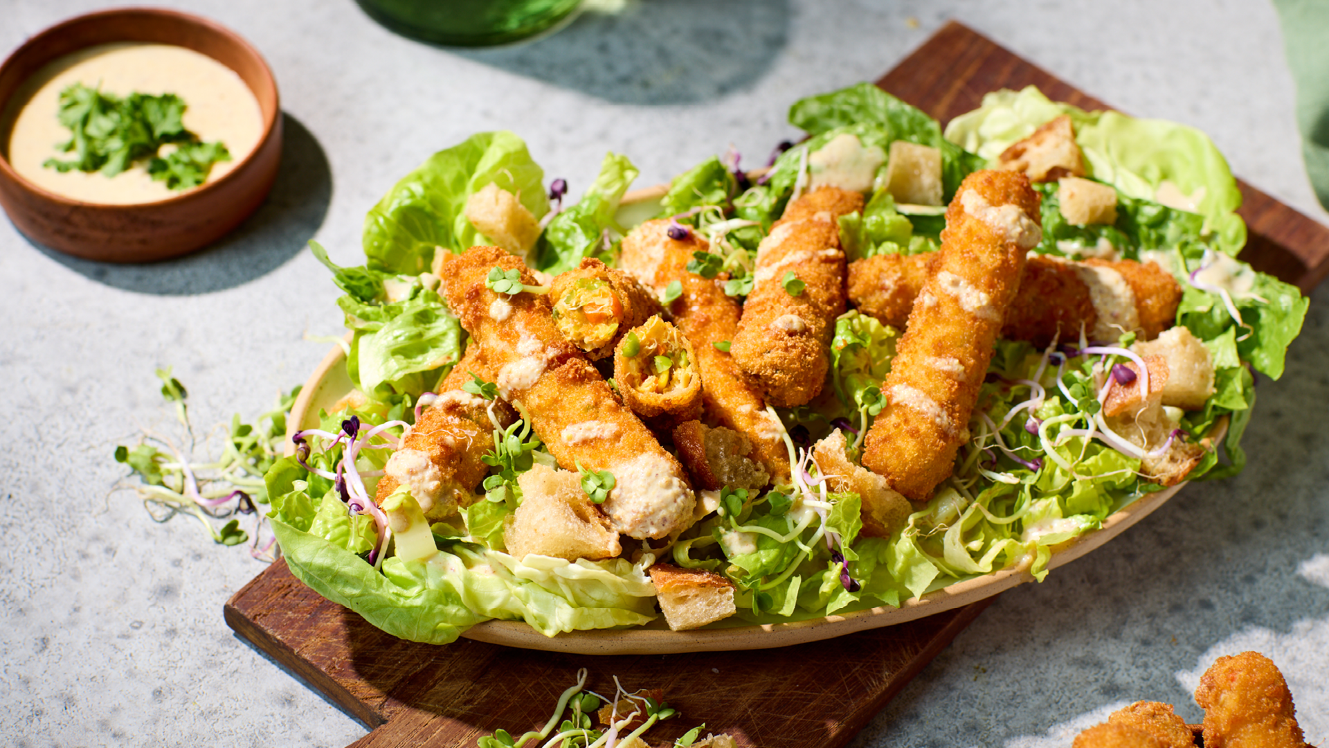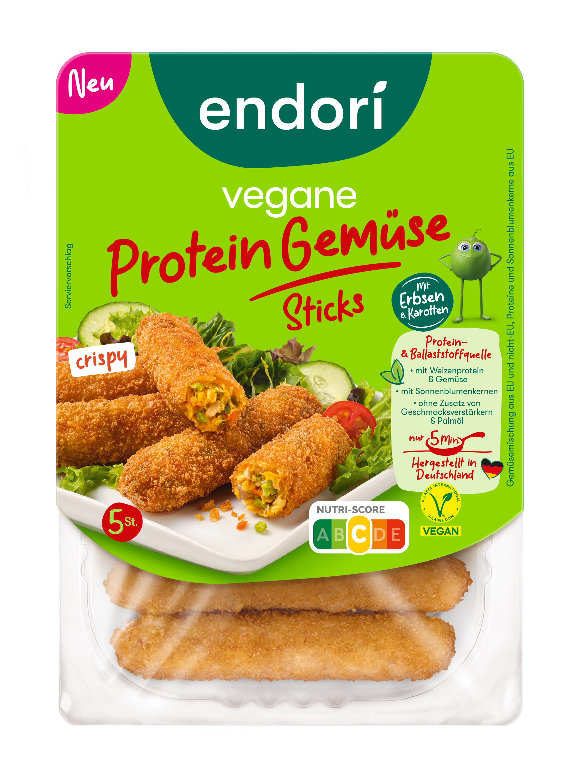 Unsere veganen Protein Gemüse Sticks vereinen feines Gemüse und pflanzliches Protein in einer extra-knusprigen Panade. Ready in wenigen Minuten sind sie das perfekte Upgrade für eine schnelle Mahlzeit oder den Snack zwischendurch. Ob pur, mit Dip oder als Highlight in deiner Bowl – die Protein Gemüse Sticks bringen Abwechslung, Geschmack und richtig viel Crunch auf den Teller. Knuspern ausdrücklich erwünscht!