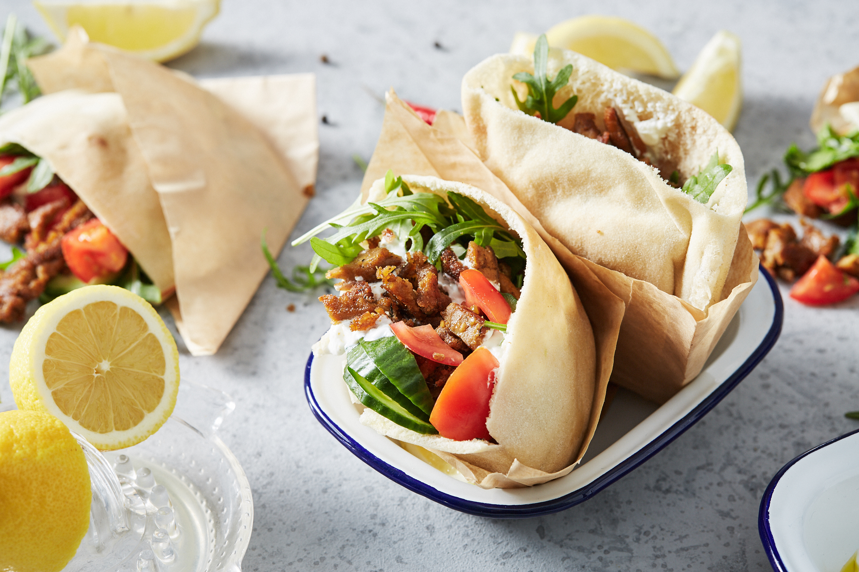endori veganes Chicken Kebab in einer heißen Pfanne mit Öl scharf anbraten. Anschließend die Pitabrote nacheinander mit Salat, dem gebratenem endori veganen Chicken Kebab und dem Knoblauchjoghurt füllen. TIPP: für noch mehr Frische kann man geschnittene Minze mit in die Joghurtmischung geben.