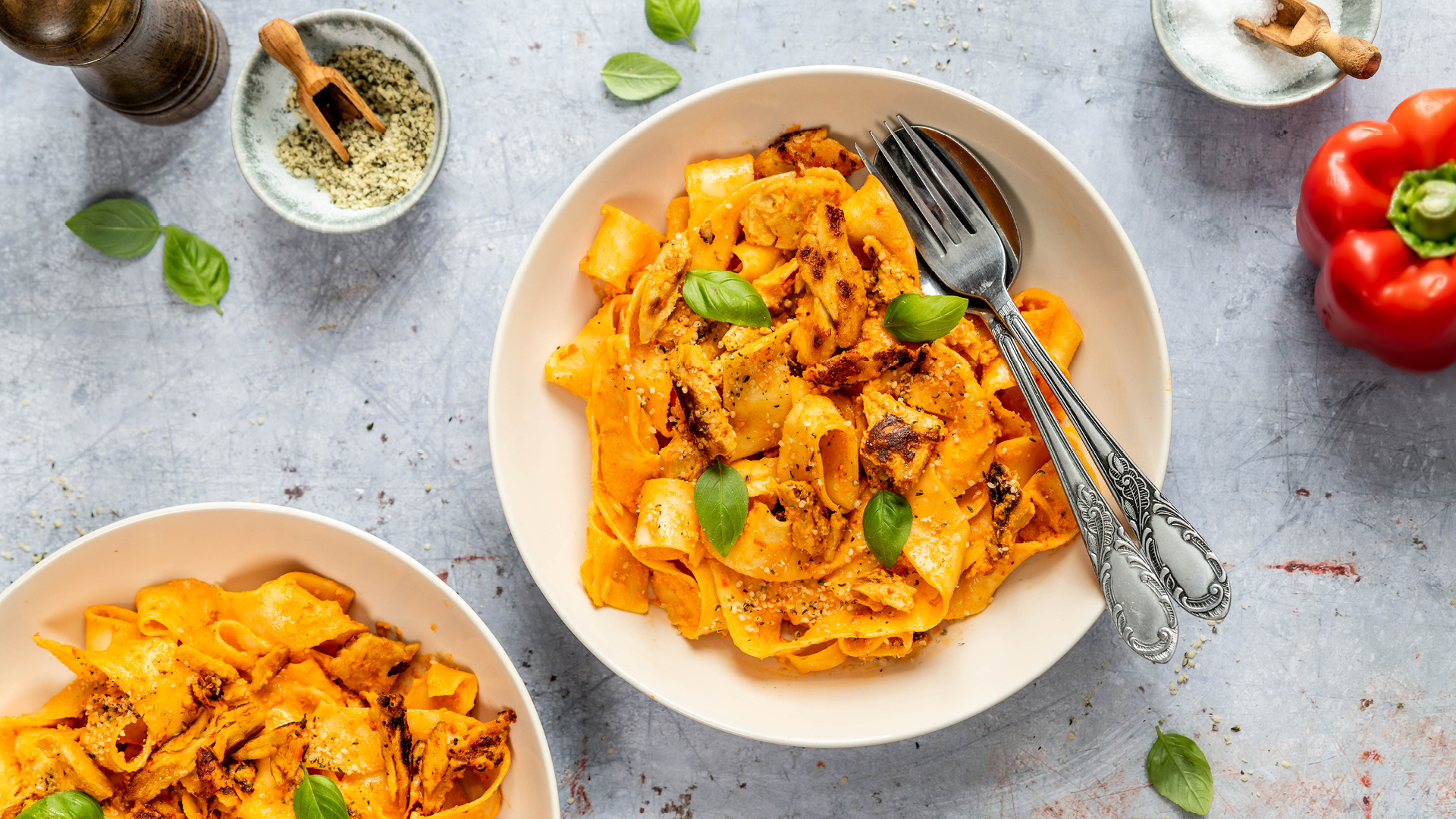Öl in einer Pfanne erhitzen und endori veganes Chicken BBQ darin knusprig anbraten. Anschließend die Paprikasauce sowie die gekochten Nudeln hinzugeben, alles gut verrühren und falls nötig erneut etwas nachwürzen.