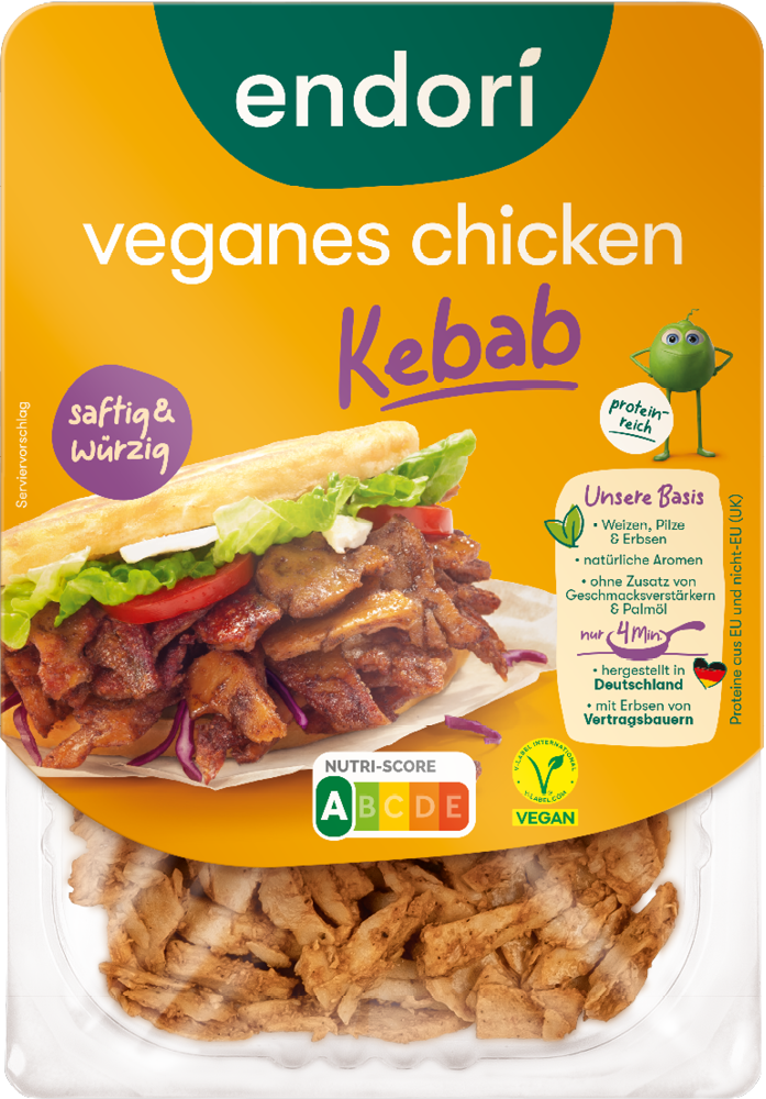 - Das endori vegane Chicken Kebab in einer heißen Pfanne mit etwas Öl für 5 Minuten unter Wenden anbraten.